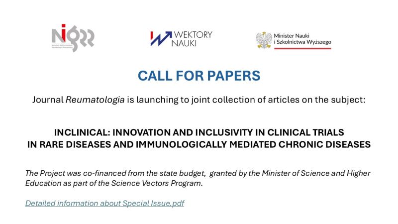 Rheumatology is scientific bimonthly aimed at rheumatologists, orthopaedists and general practitioners. Includes the original articles, observational studies, cross-sectional studies and reviews, including case based reviews, containing analysis of the literature, indicating their significance and innovation. Classic case reports will no longer be accepted as separate articles or letters to the editor. The journal also publishes recommendations, experts’ opinions, letters to the editor, eulogies and reports from national and international meetings and conferences.