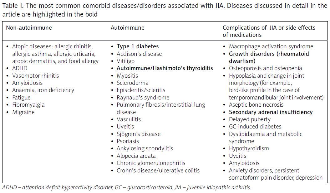 The authors also summarise the most commonly coexisting paediatric conditions in patients with JIA (Table I).