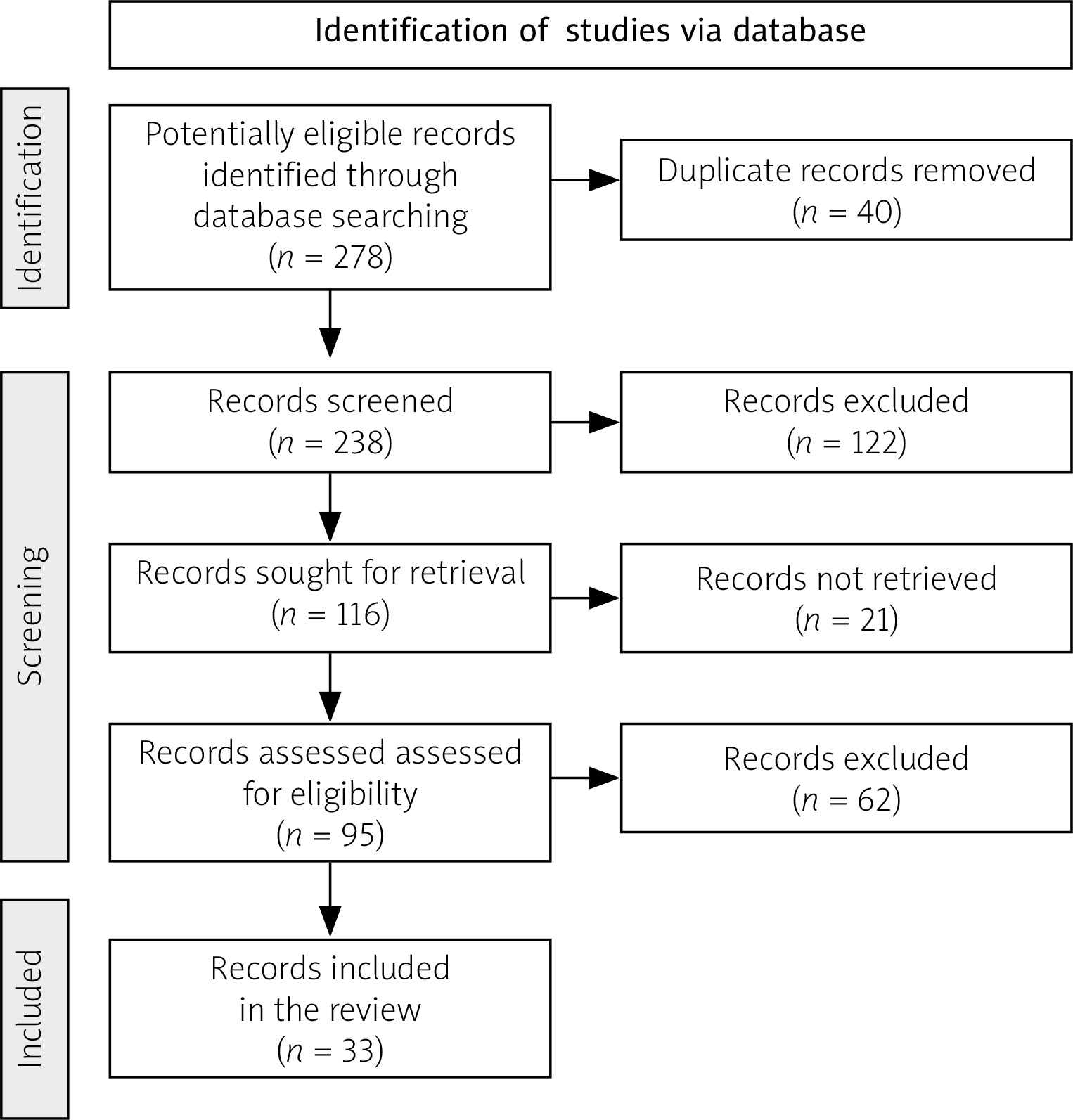 The literature review adhered to the PRISMA (Preferred Reporting Items for Systematic Reviews and Meta-Analyses) 2020 guidelines as in the presented flow diagram (Fig. 1) to ensure transparency and rigor in the review process. A comprehensive literature search was conducted via PubMed, using the key words “giant cell arteritis”, “GCA”, “posterior ischemic optic neuropathy”, “PION”, “ESR”, “CRP”, “halo sign”, “temporal artery ultrasound”, “temporal artery biopsy”, and “A-AION” in various combinations. Original research, literature reviews, case reports, case series, and letters to the editors were included. Articles that were non-English language, irrelevant to the research questions, or outdated were excluded.