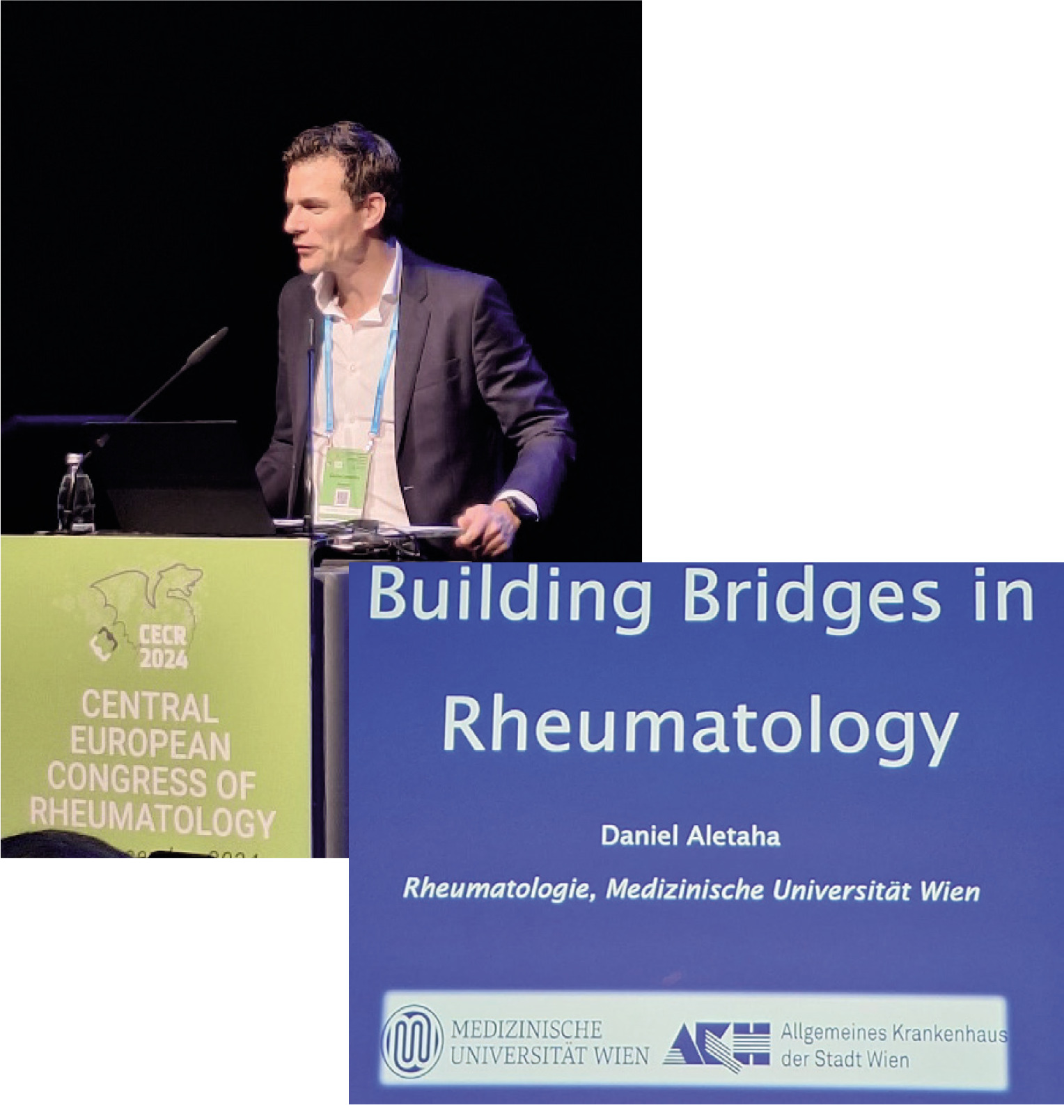 The Central European Congress of Rheumatology (CECR) is a biannual meeting of rheumatologists from member countries and distinguished international speakers. The idea of CECR was created in 1996 in Piešt’any (Slovakia) as an initiative of the presidents of 6 Central European societies for rheumatology: Austria, Czech Republic, Hungary, Poland, Slovakia, and Slovenia. Croatia, the seventh member, joined later [1]. In 2024 the 14th edition of this event was held in Ljubljana, Slovenia, on 5–7 December. All scientific sessions and presentations of poster abstracts took place at Cankarjev dom, the Cultural and Congress Centre of Ljubljana. The Congress Scientific Committee included representatives of all member countries, as follows: Želmíra Macejová (SVK), Žiga Rotar (SVN), Valerie Nell- Duxneuner & Christina Duftner (AUT), Srđan Novak (HRV), Włodzimierz Samborski (POL), Ladislav Šenolt (CZE), Zoltán Szekanecz (HUN), and Peter Balint (HUN).